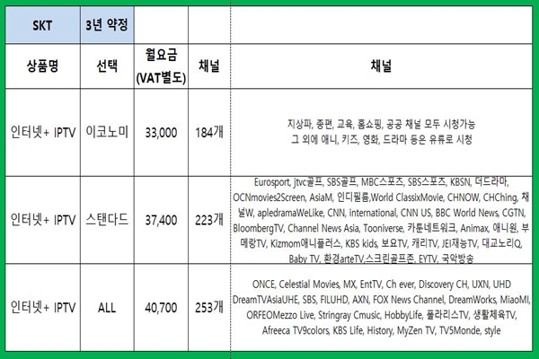 - 가격에 따라 채널 수 차이 있음(베이식 / 프리미엄 등)